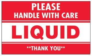 The 2 x 3 Liquid – Handle with Care Label is a durable adhesive label measuring 2 by 3 inches, designed to warn handlers that the package contains liquid and requires careful handling to prevent spills or damage during transport and storage.
