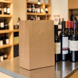 6 1/2 x 3 1/2 x 13 - 80# Kraft Wine Bottle Bag w/ Handle 250/csUnavailable$95.40 Each