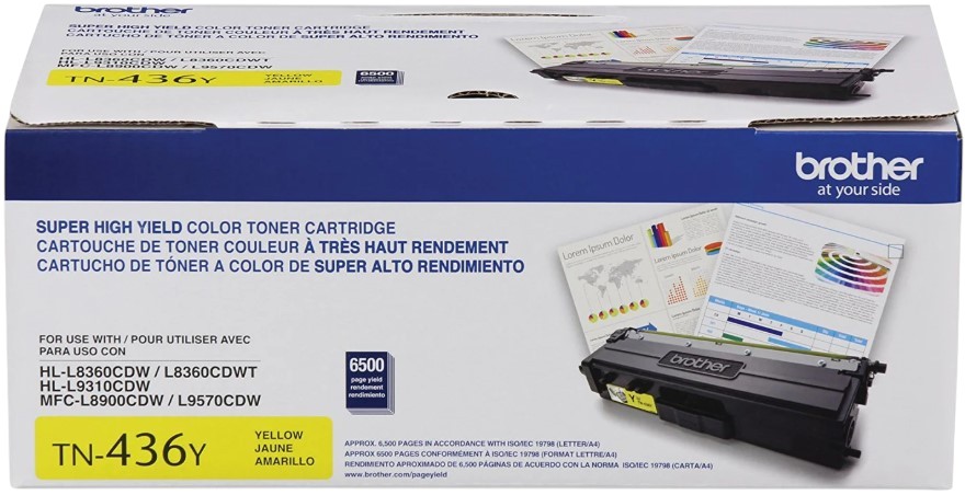 Produce vibrant, professional-quality yellow prints with the Brother TN-436 High Yield Toner Cartridge. Delivers consistent, rich color and reliable performance for high-volume printing. Easy to install and long-lasting—perfect for office or home use.
