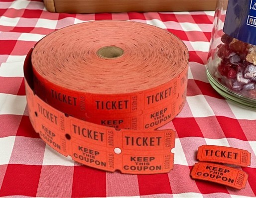 Double ticket roll "Ticket/Keep This Coupon", red 1 x 2, 2000/rl