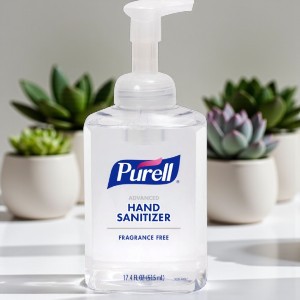 Purell Instant Hand Sanitizer Foam is a non-aerosol, alcohol-based foam that kills 99.99% of most common germs. It contains 70% ethyl alcohol and is enriched with four skin-conditioning agents to help maintain skin health. The foam formulation stays on hands longer than gels, making it ideal for high-traffic environments. It is available in various scents and is compatible with Purell's touch-free dispensers.