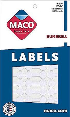 Product Details: Small Dumbbell label, 1 4/16 x 7/16, 1000/bx