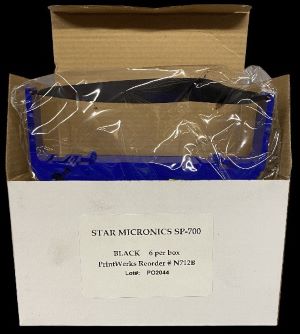 Star Micronics SP‑700/712 Nylon Black/Red Ribbon (Box of 6). This durable replacement ribbon delivers clear, legible printing in both black and red — perfect for receipts, invoices, and POS printing on SP‑700, SP‑712, and compatible printers. Designed for reliability and consistent output, it’s a cost‑effective, long‑lasting alternative to OEM ribbon cartridges.